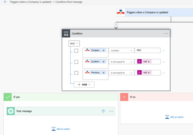 När en trigger inträffar aktiverar den en fördefinierad åtgärd i Slack. Detta görs med hjälp av IF-THEN-satser. Till exempel: