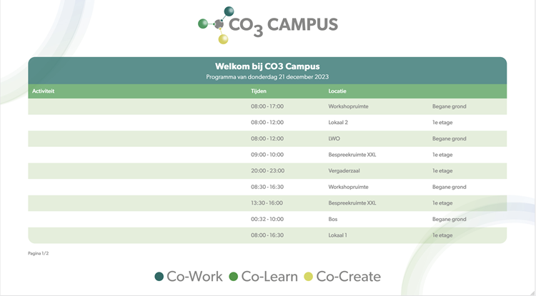 Men det slutar inte vid rummets layout. Du kan också visa annan användbar information, såsom dagens program, talare, rasttider och till och med var närmaste toaletter och utgångar finns.